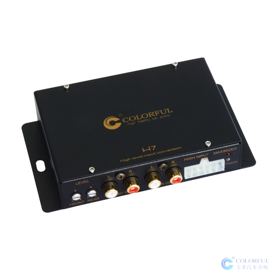 為此.卡萊電子憑著其雄厚的技術開發力量,本著對高保真音響的執著追求,針對性地研發了汽車音響改裝行業所需要的H7高保真汽車音響專業音頻轉換器(高轉低).該音頻轉換器采用優質電子元件,科學的電路設計,加上卡萊電子資深音響工程師的悉心調制而成.經其處理后輸出的信號動態范圍寬廣、失真小、高中低頻平衡,這是高保真音響系統所追求的理想信號源. 為了安裝人員的方便,本轉換器還具備獨有的控制前\后方聲道輸出信號電平的電位器械及控制功放開關機的電壓輸出(REM)功能,控制功放無須再從主機連接觸發開關線.