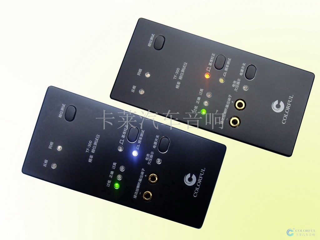 3  按住“相位測試”按鈕,分別測試左右聲道喇叭,如所有喇叭測出閃燈規律一致,如”閃藍燈三次,紅燈一次,或閃紅燈三次,藍燈一次”,則表示測試喇叭輸出相位相同.