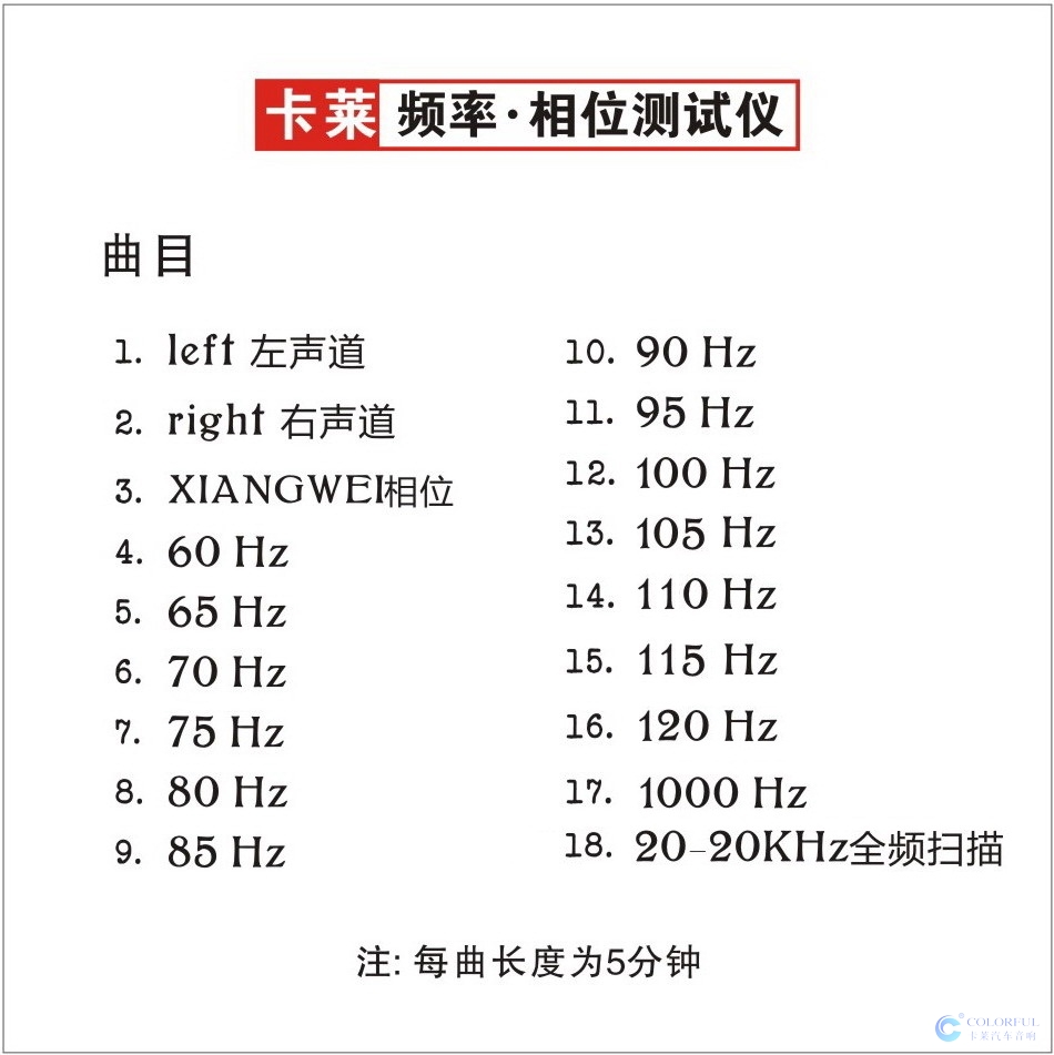 2   對照碟片曲目,播放待測頻率,例如:8首,為80HZ