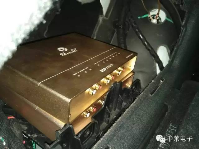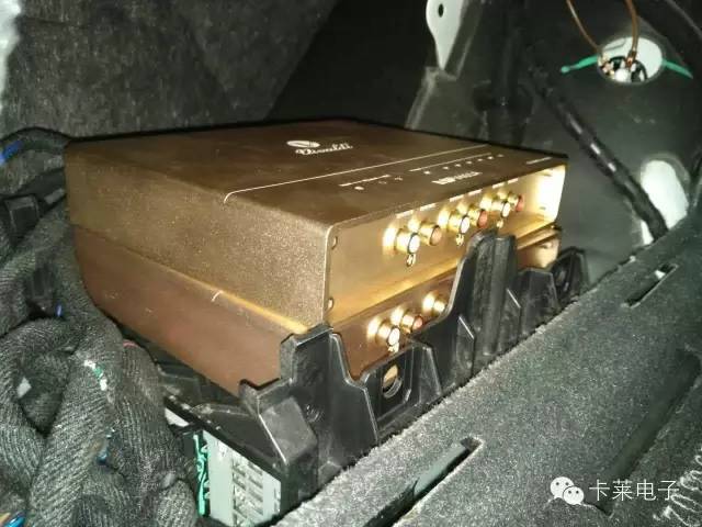 功放改裝:Audi A6L汽車音響改裝的這套系統中的功率放大器由維爾帝V461A DSP來擔任。兩臺維爾帝DSP功放功率強勁,可推四門喇叭加中置。再加上原產功放,游刃有余,絲毫不吃力!兩臺功放是放在車尾箱,無損改裝,完全不改變原車風格!